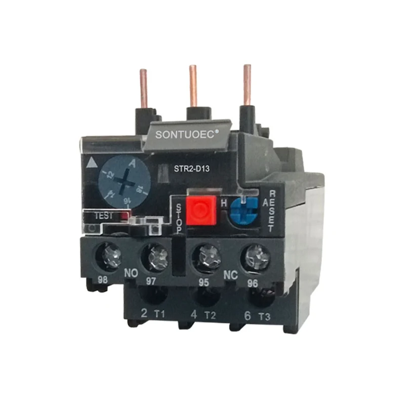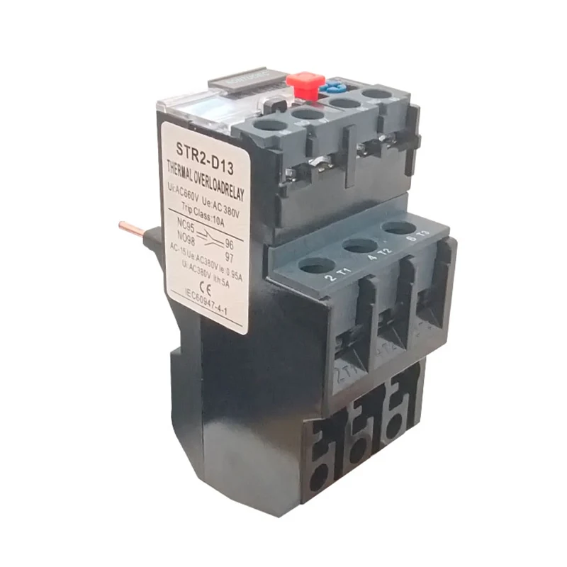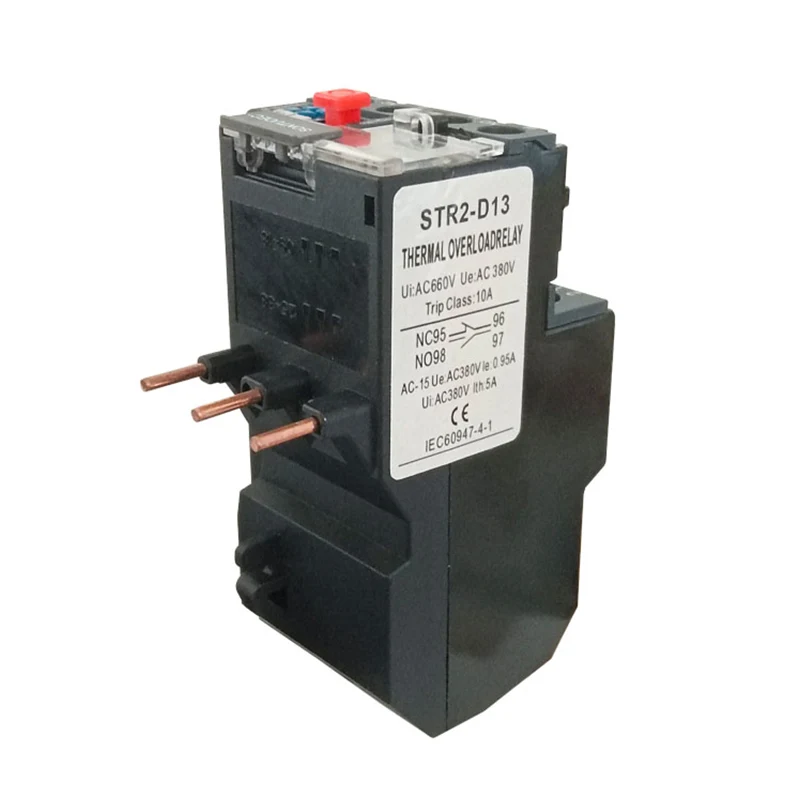 Tepelné relé STR2-D13 pozostáva hlavne z vykurovacieho prvku, bimetalu, kontaktov a súboru mechanizmu prenosu a úpravy. Medzi nimi je vykurovací prvok kus odporového drôtu s malou hodnotou odporu, ktorý je spojený v sérii v hlavnom obvode motora, ktorý sa má chrániť; Bimetálny list je vyrobený z dvoch druhov kovových listov s rôznymi koeficientmi tepelnej expanzie, ktorá sa prevráti a stlačená k sebe, a keď elektrický prúd prechádza vykurovacím prvkom, z dôvodu tepla bude sklonený bimetálny list.